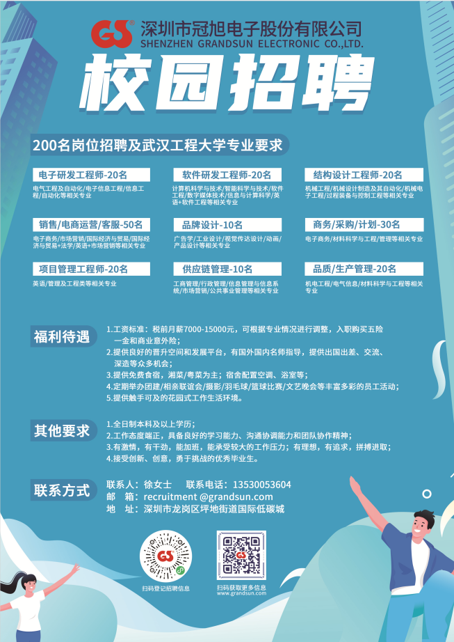 冠旭電子公布了參加武漢工程大學(xué)2021春季校園招聘公告,本次招聘包含眾多職位,覆蓋了從研發(fā)、設計、品牌、管理、商務(wù)、銷(xiāo)售等領(lǐng)域,共200個(gè)職位。